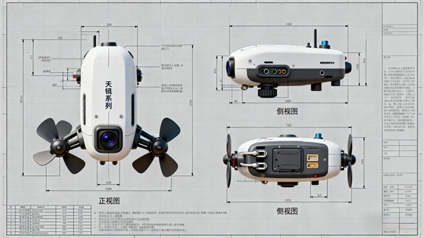 同期推出的“海镜-003”水下无人机则填补了中小型作业级水下装备的市场空白。该产品机身重量仅2.8公斤,采用高强度防水耐压壳体设计,最大下潜深度可达240米,远超人工潜水的常规极限,能够深入水下完成各类探测任务。动力系统方面,其搭载五推进器分布式布局与专利防卡沙电机技术,可实现前进、平移、俯仰等10个自由度的灵活运动,有效降低水下泥沙对设备的影响。