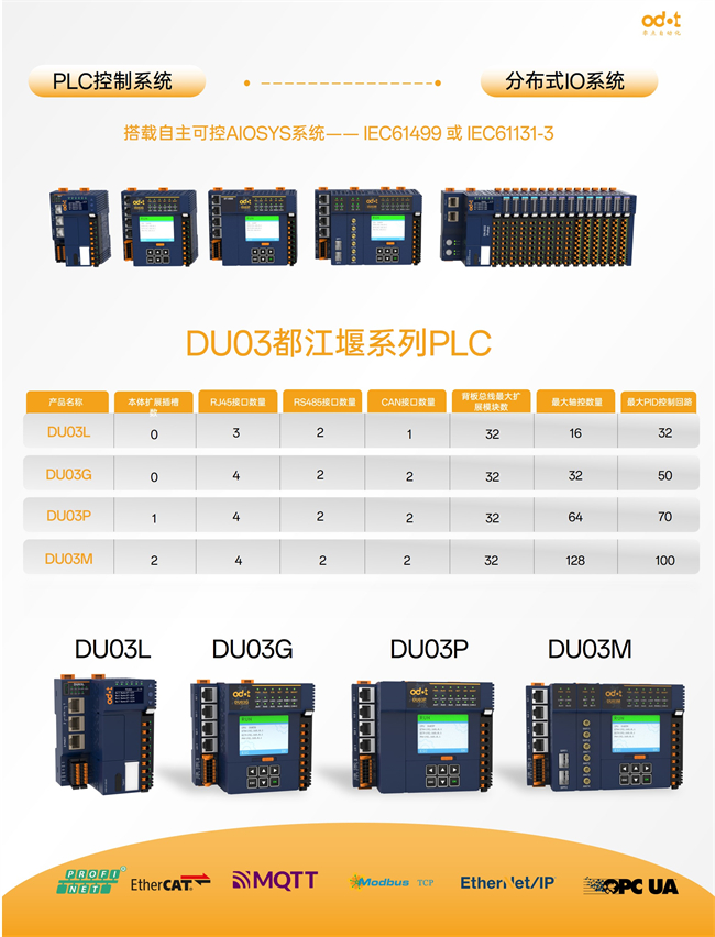 值得一提的是,DU03系列PLC被赋予了一个极具文化意蕴的名称——“都江堰”系列。两千多年前,李冰父子以卓越智慧驯服岷江水患;今日,零点以‘都江堰’PLC传承古人系统治理的哲学,让工业自动化控制如水利调度般自然、精准、流畅。